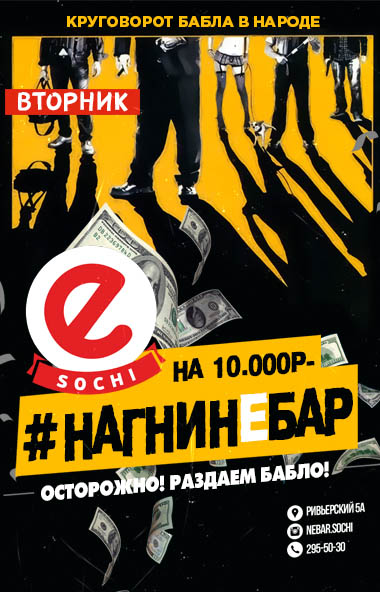 На одну ночь, Небар превратится в отделение банка и готов за ваши усилия и старания в битве с сотрудниками обналичить порядочное количество кэша. Приходи #НАГНИНЕБАР и забери главный приз 15 000 Еблей.