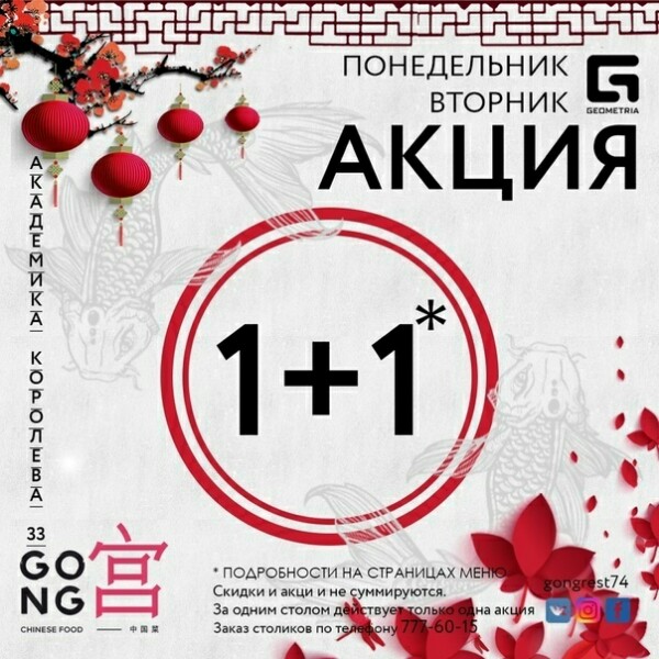 Внимание: акция "1+1" не суммируется с другими акциями и предложениями ресторана!