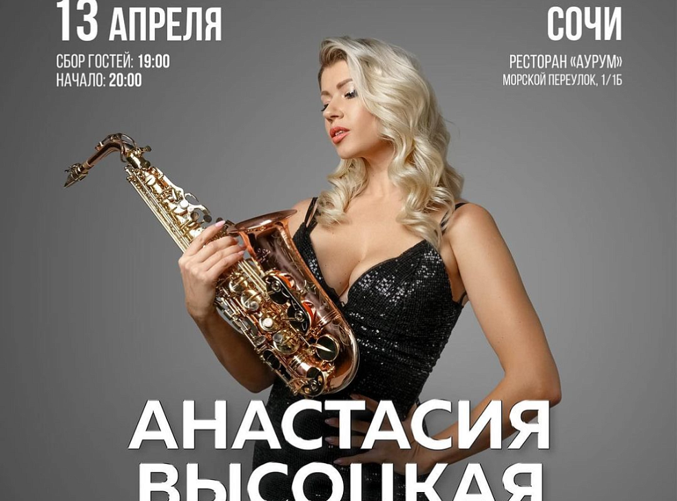 13 апреля в ресторане «Аурум» концерт Анастасии Высоцкой LADYNSAX