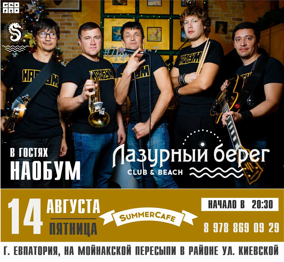 Выступление кавер группы НАОБУМ в SUMMER CAFE на пляже Лазурный берег.