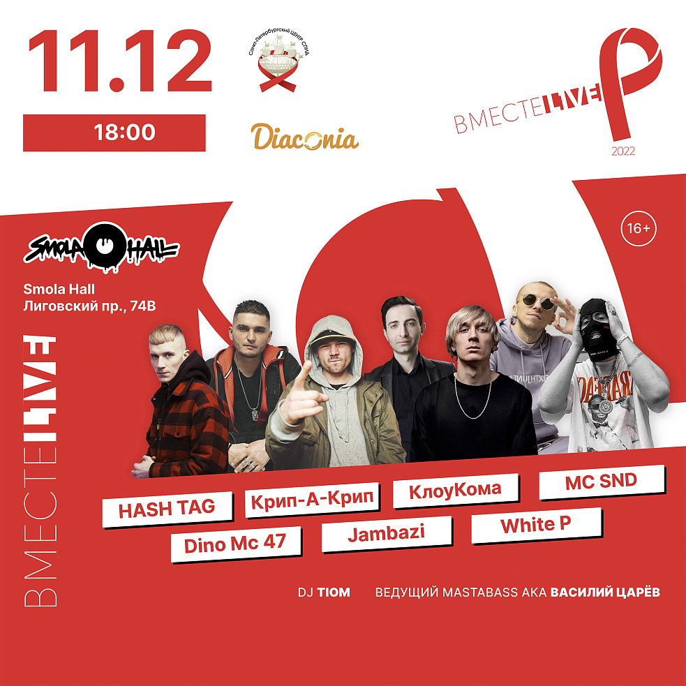 Марафон «ВМЕСТЕ L1VE 2022», приуроченный ко Всемирному дню борьбы со СПИДом, завершится грандиозным концертом 11 декабря в 18:00 в клубе «Smola Hall» на Лиговском, пр., 74В.
