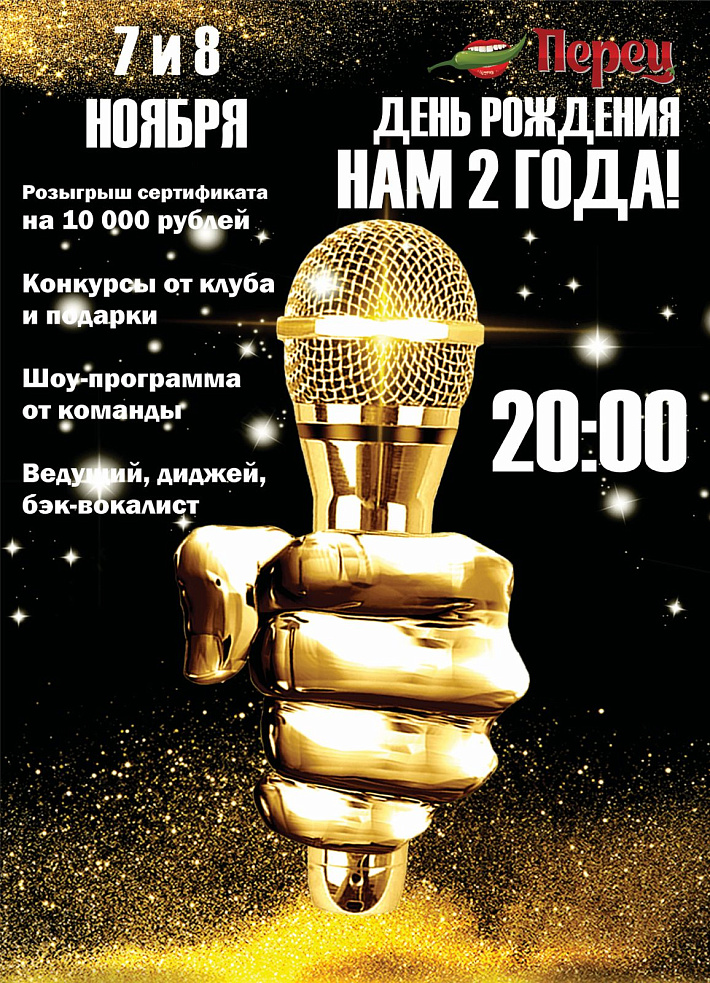 Раздели праздник с нами! Отмечаем свой День Рождения и приглашаем тебя! В программе вечера - шоу-программа от команды, розыгрыши, подарки от клуба и фотограф! Поем и танцуем вместе до самого утра!