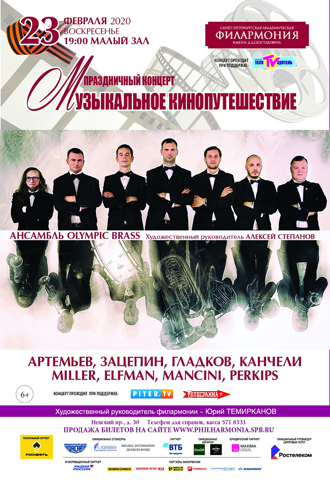 Ансамбль Olympic Brass с праздничным концертом "Музыкальное кинопутешествие"