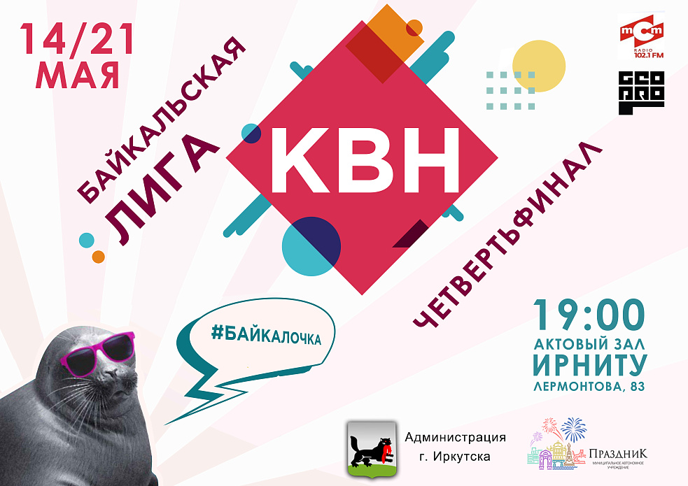 14 и 21 мая состоятся четвертьфинальные игры Байкальской лиги КВН в актовом зале ИРНИТУ (ул. Лермонтова, 83). Начало в 19 часов.