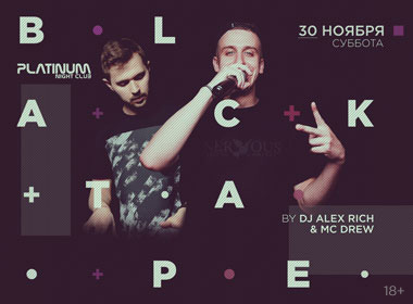 Завершаем осень громкой вечеринкой Black Tape от DJ Alex Rich и MC Drew: невероятная энергетика и взрывной коктейль из House, EDM, Trap и хип-хоп бэнгеров — ребята готовы взрывать, а мы танцевать!