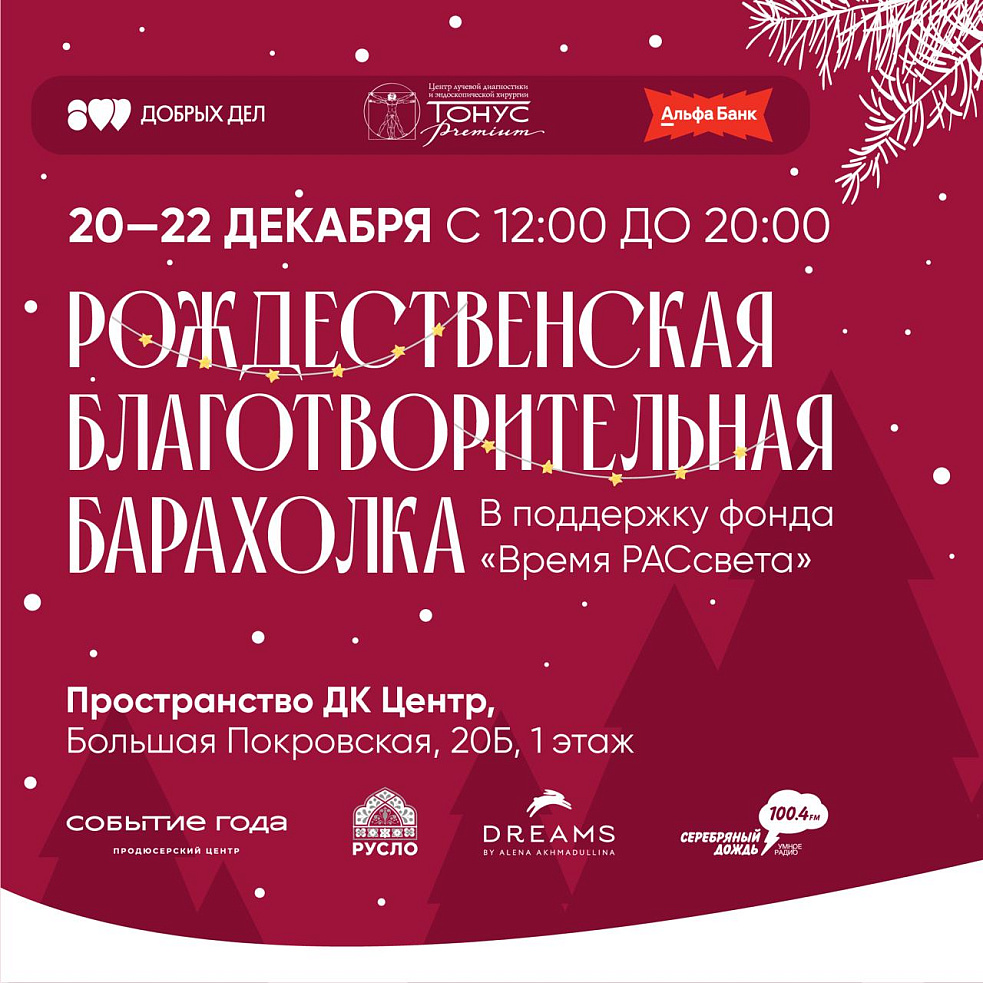 Благотворительная рождественская барахолка в поддержку фонда «Время РАСсвета» пройдет в Нижнем Новгороде с 20 по 22 декабря.