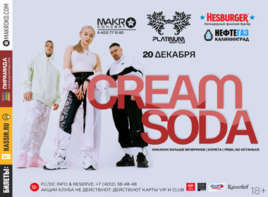Вход в клуб с 23:00, начало концерта в 01:30. Акции клуба не действуют. Действуют карты VIP и Club. Ограничение по возрасту 18+, работает дресс-код и фейс-контроль. Подробности и заказ столов по телефону: 8(4012)38-48-48.