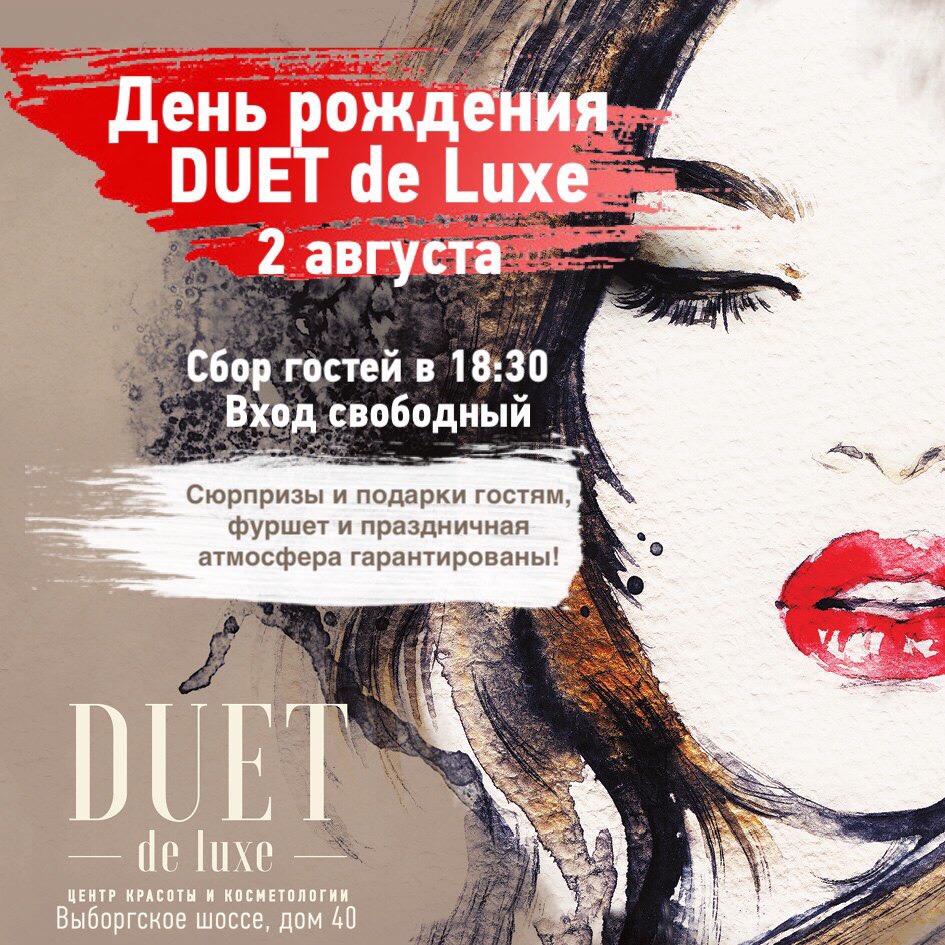 2 августа мы отмечаем 4-й День Рождения Центра красоты и косметологии DUET de Luxe!