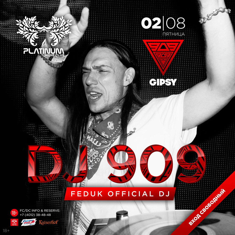 В начале августа в Калининграде будет много интересных артистов и мы не могли не воспользоваться этим. В эту пятницу самый большой танцпол города будет прокачивать резидент таких московских клубов, как Gipsy, Soho Rooms и Icon, а также официальный диджей Федука — DJ 909! Одевайте удобную обувь — это будут динамичные танцы!