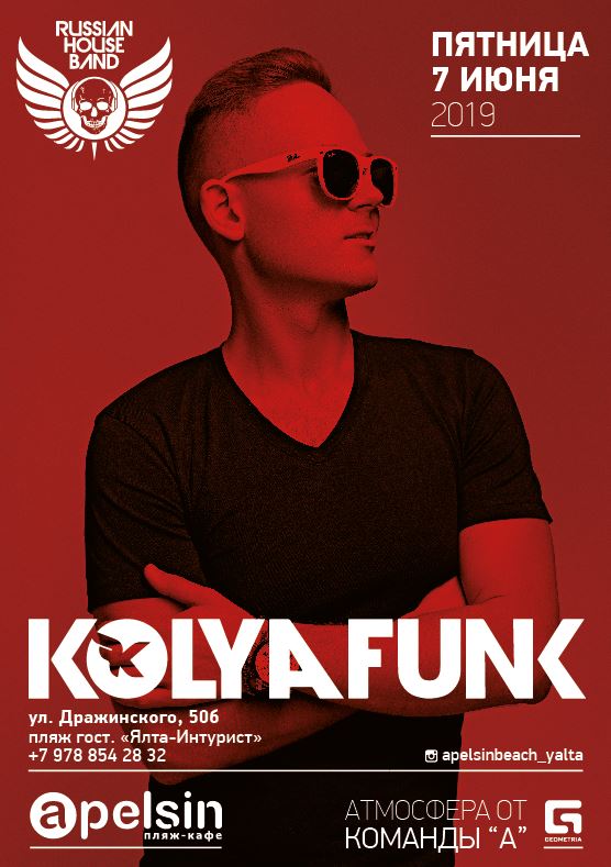7 июня в пляж-кафе"APELSIN" DJ KOLYAFUNK.