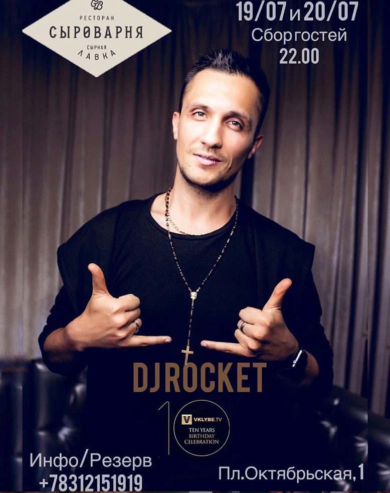 В эту пятницу и субботу, 19 и 20 июля, в Сыроварне выступит наш приглашённый гость из Москвы - Dj Rocket! ⠀