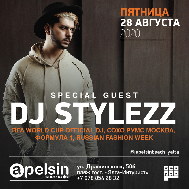 ПЯТНИЦА 28 августа для вас выступит специальный гость - DJ STYLEZZ - артист и DJ лейбла «ZHARA MUSIC”, официальный DJ FIFA WORLD CUP RUSSIA, СОХО РУМС Москва, Формула 1, Russian Fashion Week и лучший DJ года 2016-2017 vklybe.tv awards.