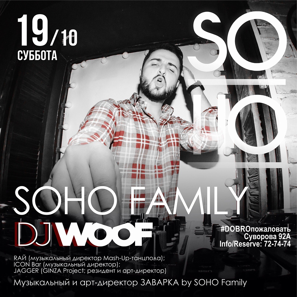 Уже в эту субботу, DJ WOOF подарит нам ночь, наполненную мелодичными ритмами ярких красок эйфории! 19октября, SOHO, Культурный Центр DOBRO!!!