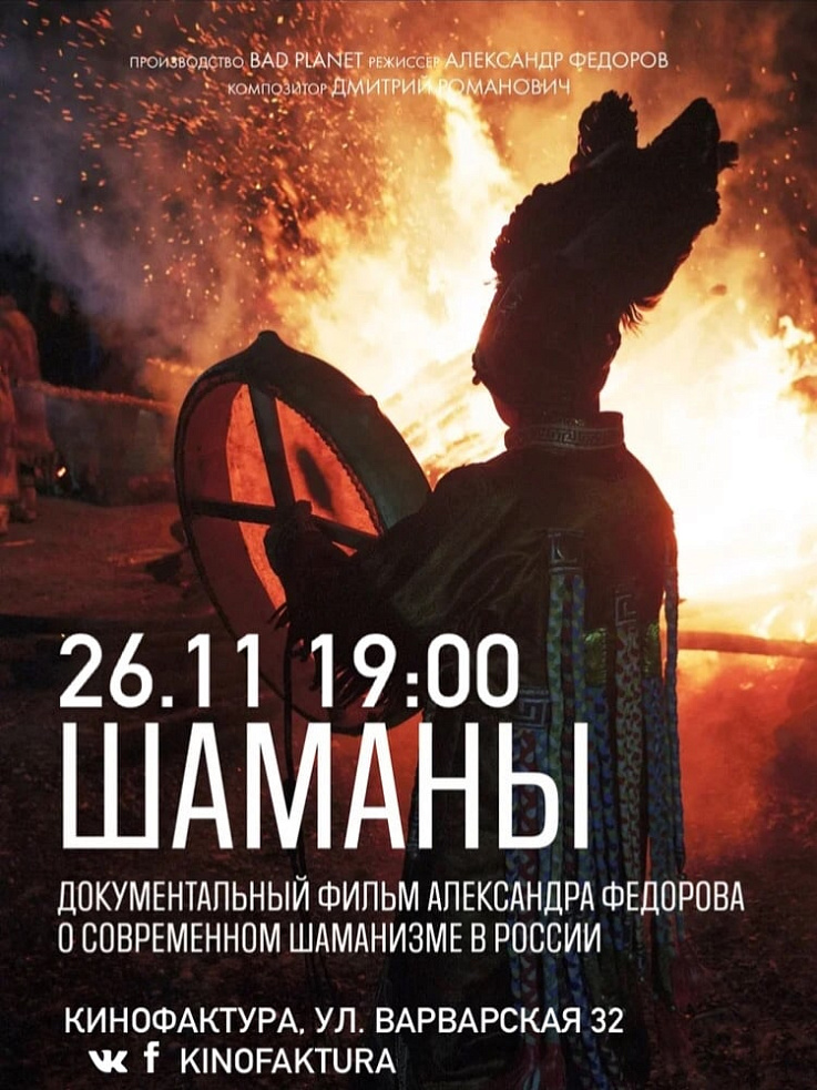 Дорогие зрители! С радостью приглашаем вас на показ и обсуждение документального фильма "Шаманы"! Билеты можно приобрети только онлайн по ссылке https://kinofakturann.timepad.ru/event/1482906/