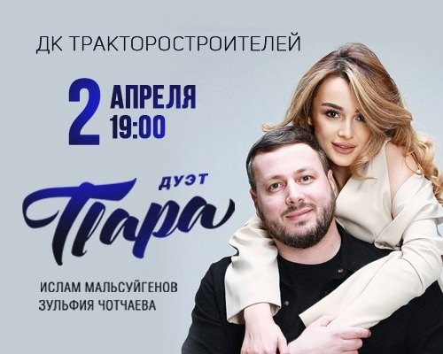 2 апреля в ДК тракторостроителей дуэт «Пара» Зульфия Чотчаева и Ислам Мальсуйгенов.