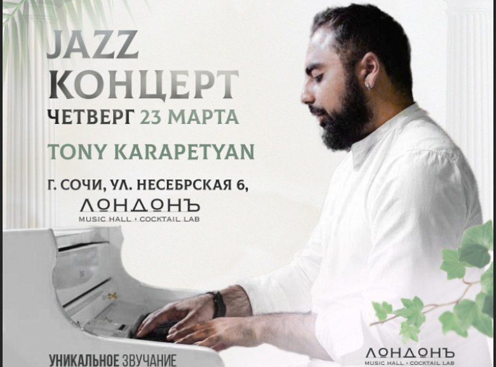 23 марта 2023 года в интеллектуальном клубе MontParnasse пройдёт джаз концерт несравненного Тони Карапетян