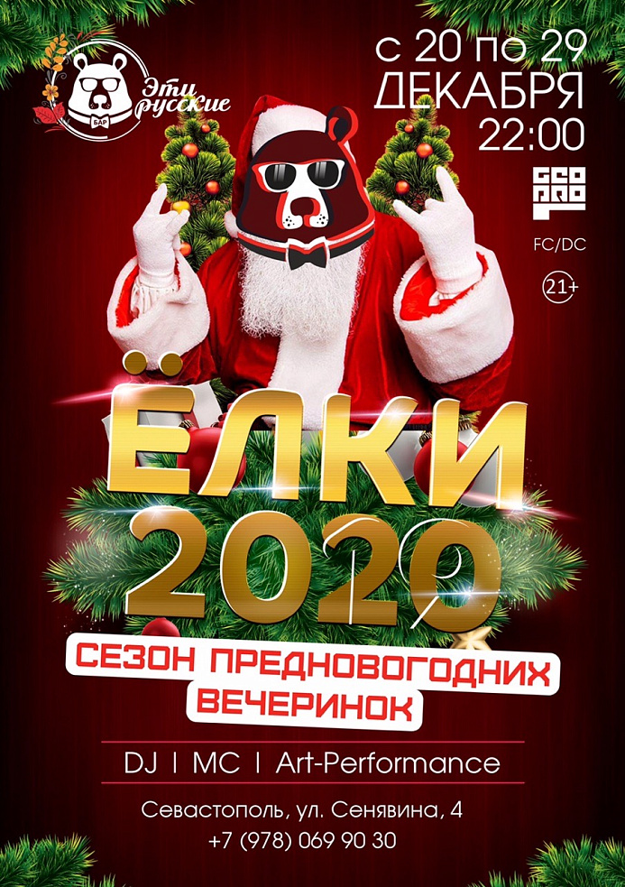 ▫Вход на вечеринки 20 и 21 декабря 300 рублей. По предварительной брони стола – бесплатно.
