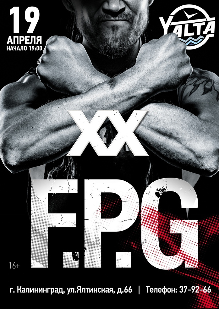 Панк среди панка и 20 лет бесперебойного напряжения: группа F.P.G отметит свой День рождения в Калининграде грандиозным концертом! Резво, как в первый раз, и мастерски, по своим годам, музыканты отыграют особенную программу. Как всегда, без сюрпризов не обойдется! Настоящий праздник Дерзости и Молодости!