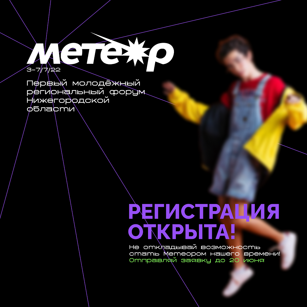 «Метеор» — первый молодёжный образовательный форум для региона, который соберёт 400 молодых людей со всей области на двух площадках Горьковского моря (ССОЛ «Заря» и ССОЛ «Чкаловец»).
