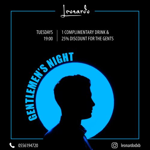 1 Complimentary Drink & 25% Discount for the Gents