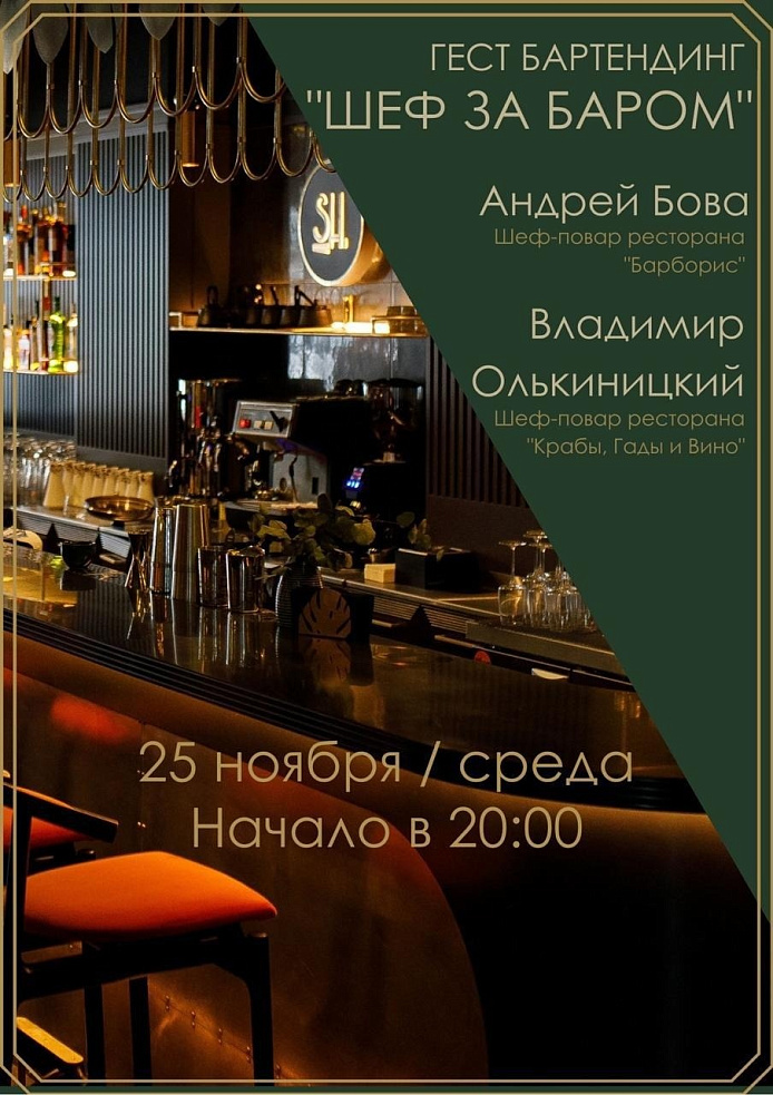 Именитые Шефы 25 ноября с 20:00 будут создавать шедевры не на кухне, а за баром SHELEST