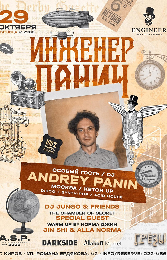 29 октября 2021, в пятницу, с 21:00, впервые в стильном пространстве бара the Engineer пройдёт выступление особого ди-джея, которого любят и ждут во многих уголках страны – Андрея Панина!