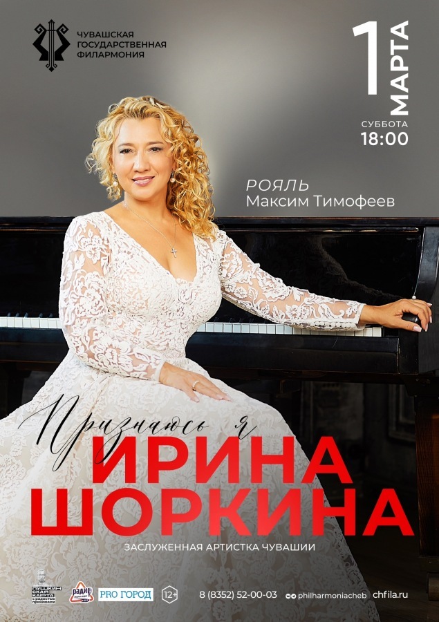 1 марта на сцене Чувашской государственной филармонии состоится концерт заслуженной артистки Чувашии Ирины Шоркиной (г.Москва) с программой «Признаюсь я».