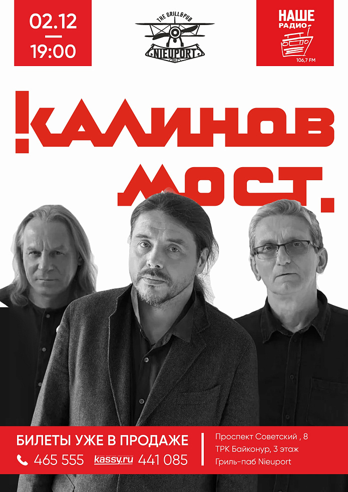 2 ДЕКАБРЯ в гриль паб Nieuport - легендарная российская рок группа Калинов Мост.