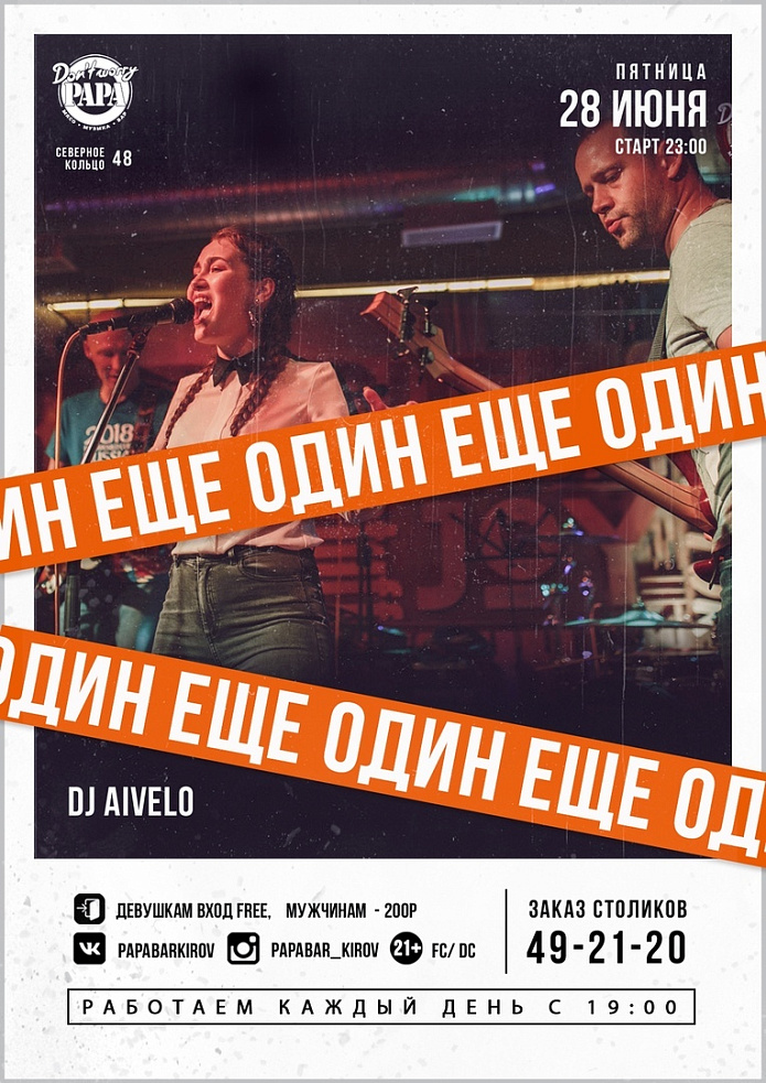 pre-party > ЯСАМА (готовим себе коктейли) > кавер-бэнд ЕЩЕ ОДИН, а сразу после DJ AIVELO