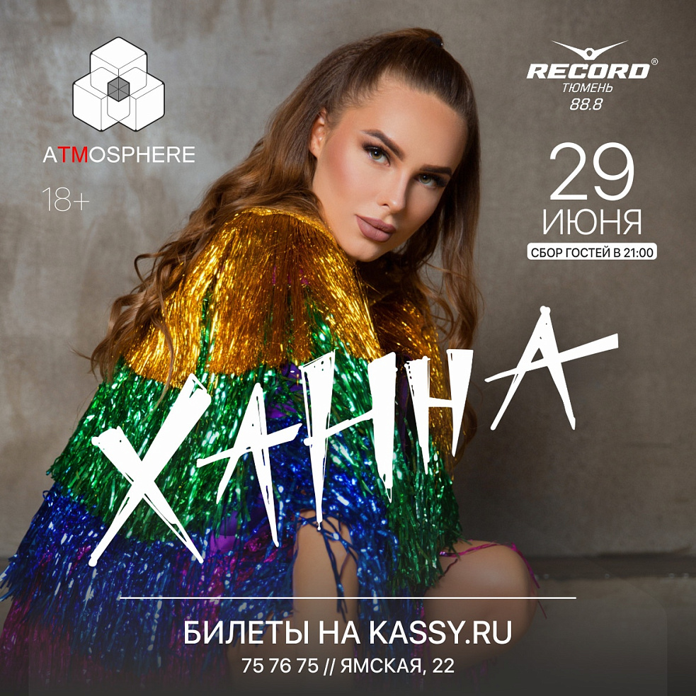 29 июня, в День молодёжи, Радио RECORD представляет: грандиозный концерт Ханны в баре «Атмосфера»!