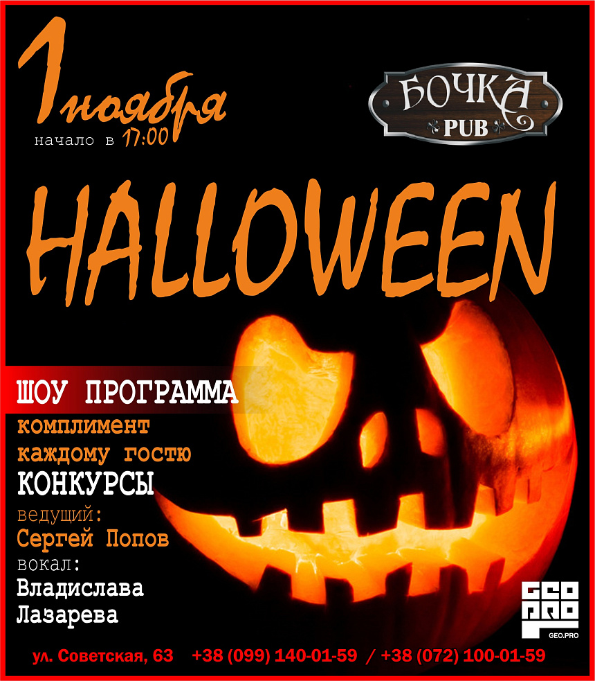 Halloween в Паб "Бочка" 1 ноября! Начало в 17:00.
