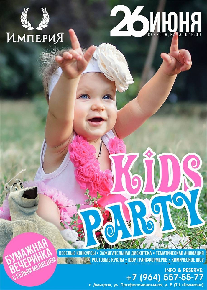 В субботу 26 июня состоится большой детский праздник «KIDS PARTY» на котором ваш малыш проведёт замечательно время