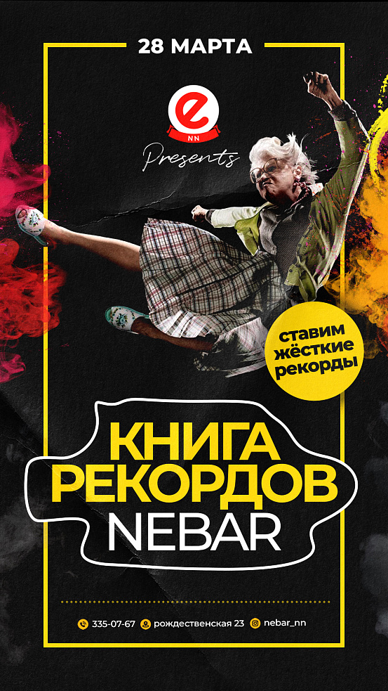 - Приходи и покажи все, на что ты способна и попади в КНИГУ РЕКОРДОВ небар! Ну и всем небаром покажем, на что способно самое трешовое место в Нижнем!
