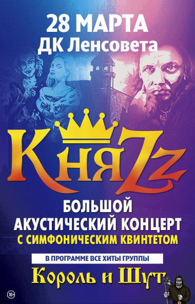 Боевая питерская рок-банда «КняZz» решилась на эксперимент – впервые в своей истории выступить с полноценными акустическими концертами на знаковых площадках Москвы и Петербурга в сопровождении струнной секции. Зрителей ждёт двухчасовая программа, в которую войдут избранные композиции групп «КняZz» и «Король и Шут» в изобретательных аранжировках.
