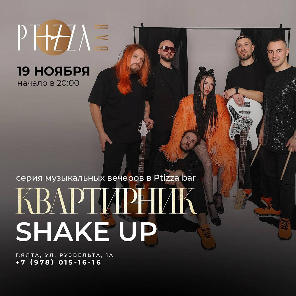 Уже 19 ноября под куполом PTIZZA BAR нас ждет живое выступление SHAKE UP - самой драйвовой кавер-группы полуострова.