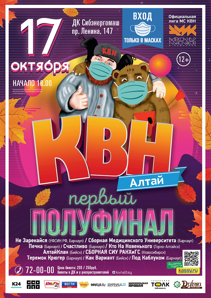 17 октября в 18.00 в ДК Сибэнергомаш (пр. Ленина 147 )состоится Первый Полуфинал Официальной лиги #КВНАЛТАЙ 2020.