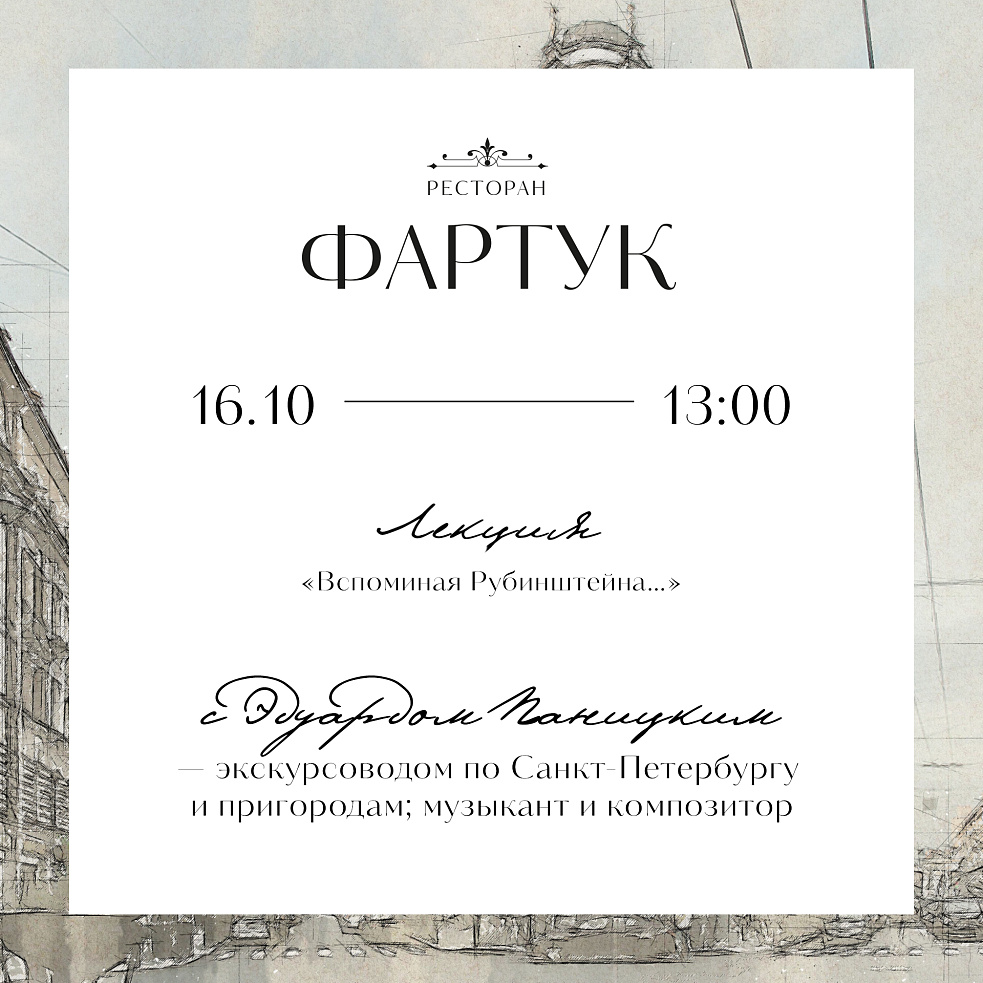 Лекция «Воспоминания Рубинштейна» в ресторане «Фартук»
