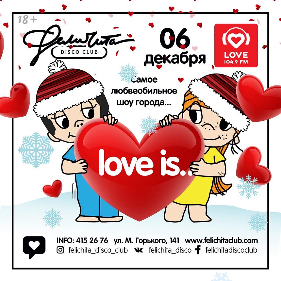 Пятница, пожалуй, самый любвеобильный проект города – «Love is…» распахнет свои объятья и с головой погрузит в ту саму атмосферу любви!