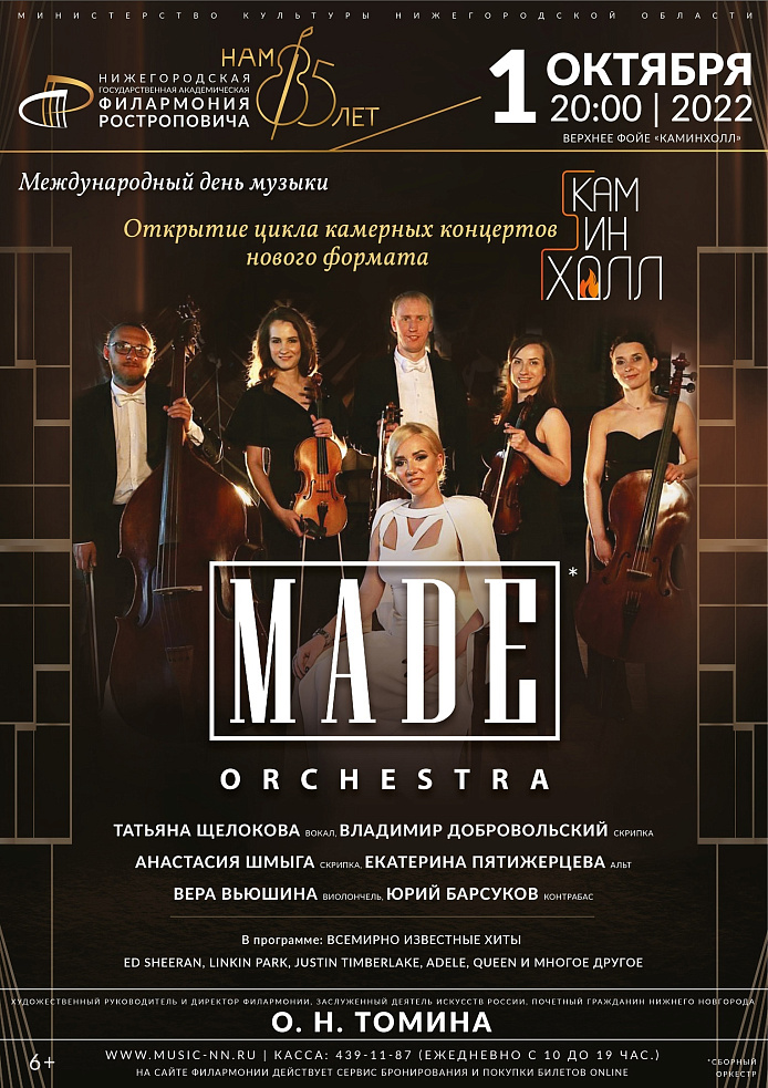 Коллектив Made Orchestra исполнит композиции: Ed Sheeran, Linkin Park, Justin Timberlake, Adele, Queen и многое другое.