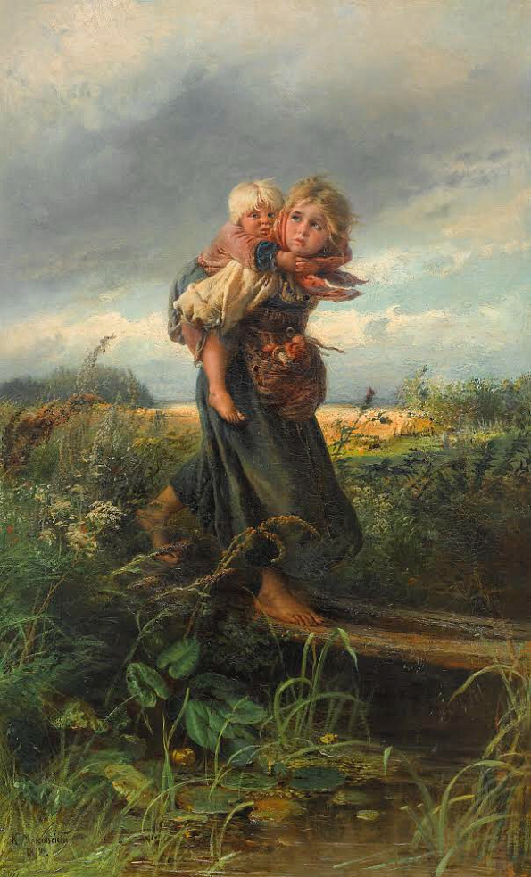 такие хрестоматийные полотна из собрания Третьяковской галереи, как «Дети, бегущие от грозы» (1872) К.Е.Маковского