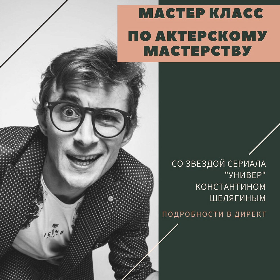 Детское международное арт-агентство проводит МАСТЕР КЛАСС ПО АКТЕРСКОМУ МАСТЕРСТВУ с актером театра и кино, звездой сериала “Универ” КОНСТАНТИНОМ ШЕЛЯГИНЫМ