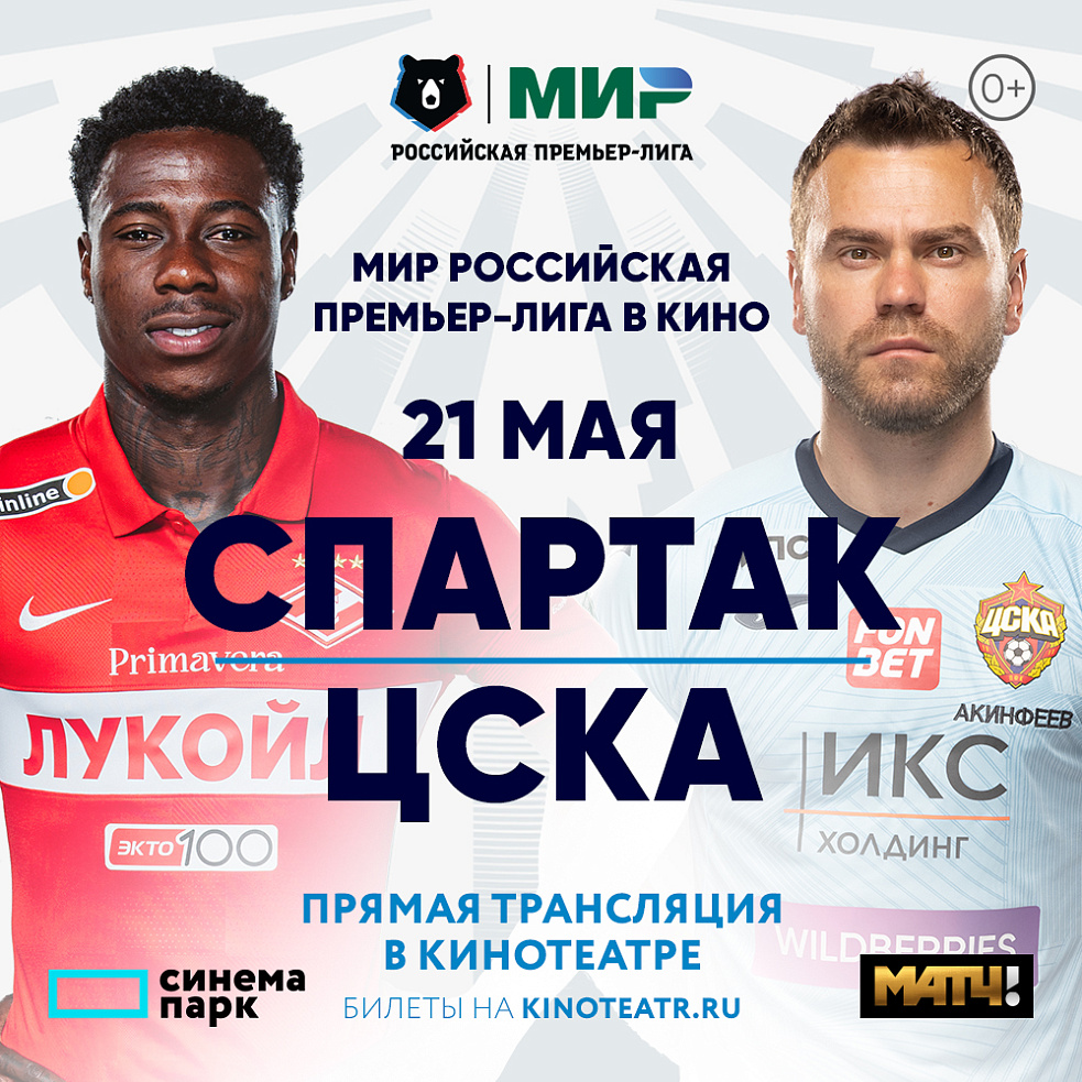 МИР РПЛ. Спартак-ЦСКА. 21 мая прямая трансляция московского дерби в кинотеатре Синема парк ТРЦ «Фантастика»