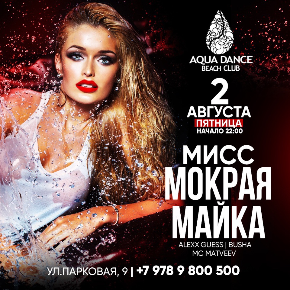 В эту пятницу, 2 АВГУСТА в Aqua Dance Beach Club пройдет вечеринка "Мисс Мокрая Майка"