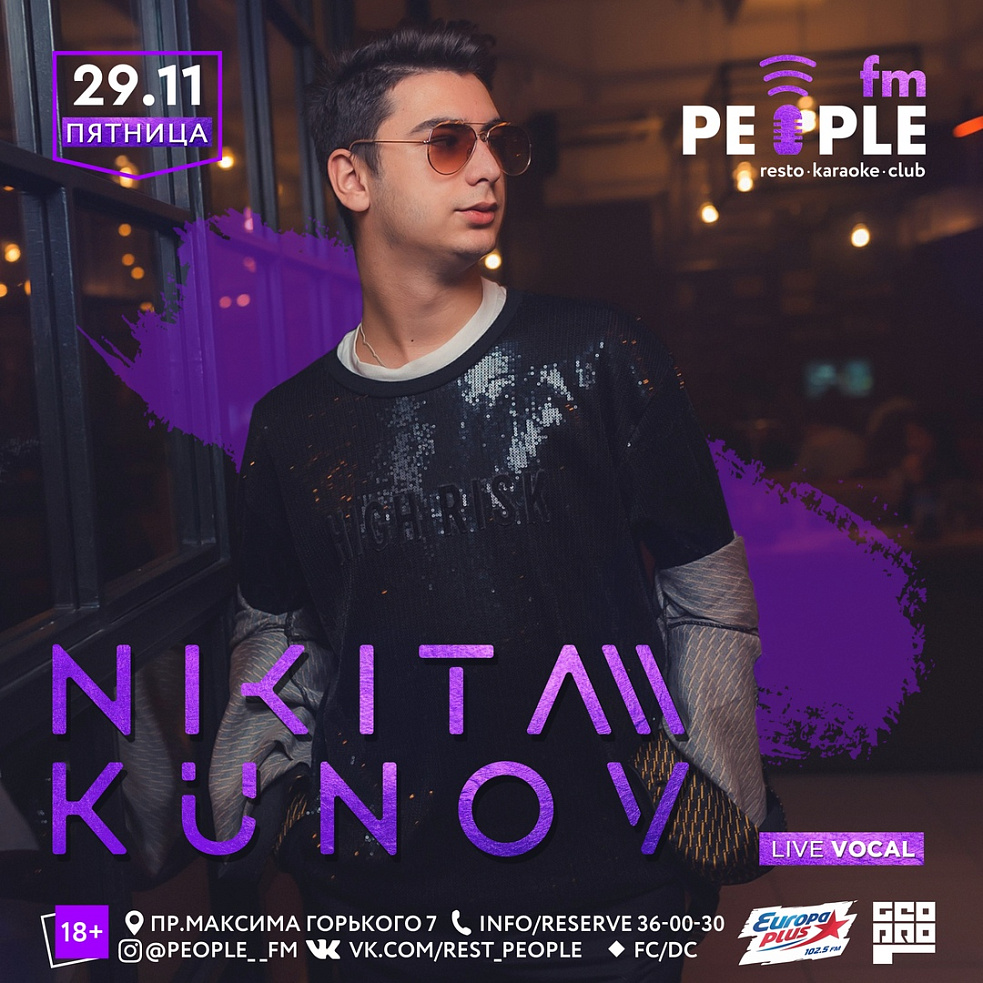 Создавать настроение для вас будет человек с ярким и многозвучным голосом Никита Кунов.