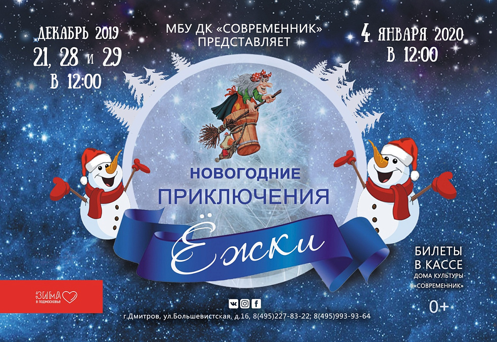 Дом культуры «Современник» приглашает детей и взрослых на самое волшебное преставление этой зимы - «Приключения Ёжки»!
