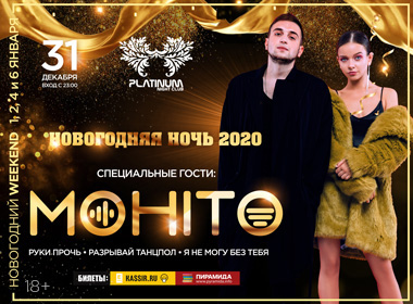 Приглашаем вас встретить новый год в клубе «Platinum»: будут звучать лучшие треки 2019-го, ваши друзья и знакомые будут поднимать бокалы и произносить тосты, а со сцены свои самые известные песни исполнит группа МОХИТО — молодые, яркие и талантливые Паша и Саша, покорившие в уходящем году чарты своей работой «Руки прочь».