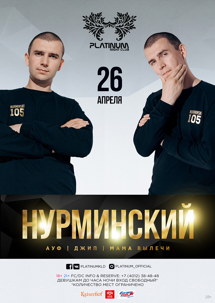 В эту пятницу в клубе «Platinum» будет очень шумно, ведь свои главные хиты исполнит Нурминский!