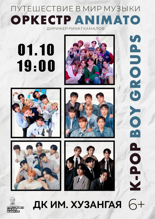 19 января на сцене Дворца культуры имени Петра Хузангая состоится концерт оркестра «Animato», который исполнит лучшие хиты Stray Kids, Ateez, EXO, Seventeen, BTS и многих других.