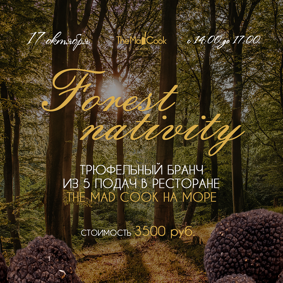 Вдохновляясь волшебными красками осени мы создали осенний бранч «Forest Nativity», где главным ингредиентом станет одно из самых необычных богатств природы – трюфель, известный своим вкусом и ароматом.