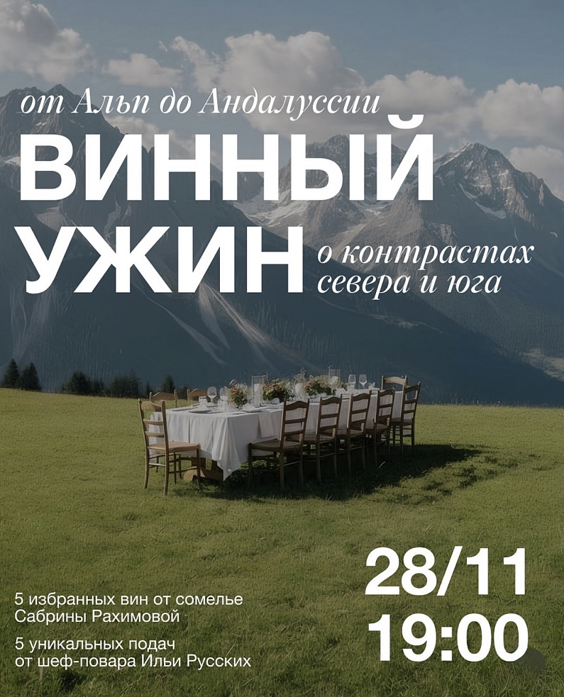 28 ноября в 19:00 приглашаем вас на винный ужин, вдохновлённый альпийскими регионами Европы.